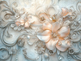 Soft flowers entwined with swirling silver threads, forming intricate filigree details inspired by filigree jewelry and filigree earrings