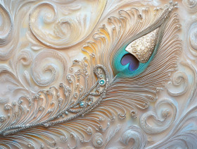 A peacock feather interlaced with silver filigree, blending nature elegance with intricate filigree jewelry and filigree earrings craftsmanship
