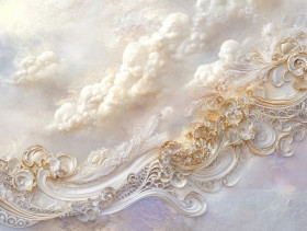 Swirling clouds framed by ornamental lace borders, showcasing intricate filigree details inspired by filigree jewelry and filigree earrings