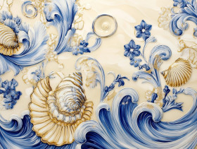 cibulak porcelain seashell waves swirling elegant pattern ocean beauty coastal sea rhythm intricate artistic vintage soft blue nature water marine classic design delicate fine heritage flowing detailed maritime decorative aquatic tranquility peaceful ceramic timeless ornamental craftedImagine Buddy