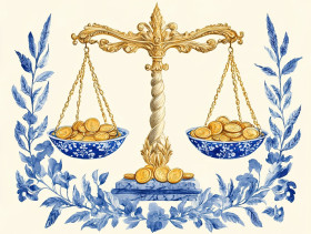 cibulak porcelain scales balanced coins wheat illustrated trade prosperity harmony commerce nature intricate artistic detailed traditional elegant soft blue classic finance agriculture wealth business vintage old-world crafted economy historical symbolic heritage decorative delicate ceramic timeless justice ornateImagine Buddy