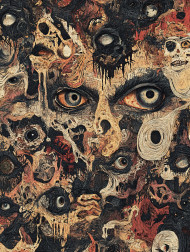 cathedral writhing eyeless figures grotesque tapestry suffering souls twisting contorting silent eternal agony horror eerie unsettling surreal nightmare darkness torment decay shadows lament gothic spectral abandoned haunted whispers cursed haunting horror art supernatural grotesque nightmare ominous lost soulsImagine Buddy