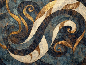 mokume gane mokume vines herbal flowing organic swirls botanical nature decorative artistic textured layered metallic fluid intricate detailed craftsmanship reflective shimmer motion curving ornamental lush abstract stylized polished surface delicate natural forged elegant twisting embossed floralImagine Buddy