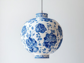 lantern floating blue floral patterns gzhel pottery russian porcelain glowing inspired folk art delicate decorative intricate elegant ceramic traditional swirls ornamental design vintage culture handmade heritage motif craftsmanship artwork detailed classic unique charm illuminatedImagine Buddy