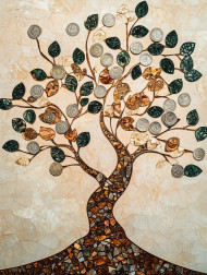 money tree silver coin inlays shimmering leaves wealth prosperity intricate detailing elegance symbol finance fortune luxury craftsmanship beauty nature ornate glow investment traditional heritage handmade luminous decorative detailed spiritual opulence fine artistic flourishing valuableImagine Buddy