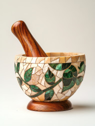 mortar pestle herbal vine inlays intricate detailing natural traditional medicine craftsmanship ornate elegant beauty glow healing detailed vintage heritage fine luxurious luminous decorative wellness botanical handmade holistic apothecary alternative rich polished artistic refined uniqueImagine Buddy