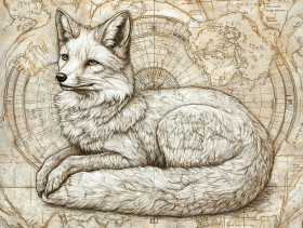 scrimshaw fox curled engraving linework etching fur detailed intricate carving nature art animal texture wildlife ornate crosshatch fine design illustration vintage antique traditional artistic handcraft decorative precision woodcut shading realism monochrome stylized curled wilderness faunaImagine Buddy