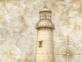 A lighthouse with intricate linework, scrimshaw carving, fine etched details, maritime navigation symbol, oceanic coastal theme