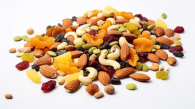 A wide-angle shot of a variety of mixed dried fruits, dry fruits mix image