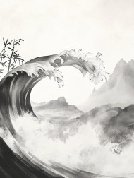 waves sumi e drawing ocean ink brushstrokes gentle movement sea flow soft calm water traditional artistic fluidity ripples blue nature tranquility serene peaceful rhythmic coastal harmony delicate horizon abstract foam balance landscape tide beauty simplicity zen meditativeImagine Buddy