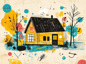 cabin cozy sketchy sketchnote wooden house nature countryside retreat peaceful warm home rustic forest mountains relaxation artistic hand-drawn illustration drawing landscape outdoor quiet getaway serene shelter lodge charming comfort wood scenery traditional remote dwelling escapeImagine Buddy