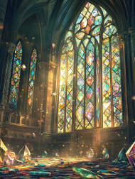 Gothic cathedral with gemstone windows, beautifully crafted in lapidary art, stunning stained glass effect created with gem inlays, lapidary saw, lapidary equipment