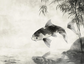 koi fish swimming pond serene traditional chinese ink brush painting movement harmony elegant water nature artistic asian oriental flow fluid graceful watercolor japan culture beauty peaceful tranquility delicate detailed decorative symbolic marine swimming motion exquisiteImagine Buddy
