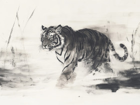 tiger mist fierce powerful chinese ink brush painting strength courage majestic predator traditional wild animal nature bold dynamic expressive striped hunter intimidating mystical movement spirit detailed art symbolic oriental roar powerful striking dramatic wildernessImagine Buddy