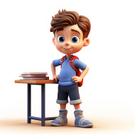 Cheerful 3d cartoon boy learning in class, back to school stock images ai, back to school ai prompts