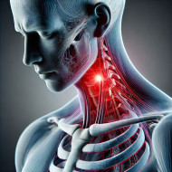 neck pain discomfort red glow 3d human body visualization illustration muscle tension cervical strain injury stiffness inflammation ache posture nerve pressure anatomy stress spinal discomfort soreness movement therapy chiropractic rehabilitation orthopedic medical wellness vertebrae healthcare relaxation sorenessImagine Buddy