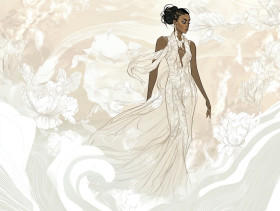 stylish woman floral print dress feminine trendy blooming patterns vibrant beauty elegant fashion design contemporary outfit apparel sophisticated chic statement colorful summer modern illustration drawing sketches clothing aesthetics wardrobe textile fresh eye catching softness grace timelessImagine Buddy