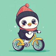 penguin bird beanie woolly bicycle yellow waddling happy chubby cute animal rider flat icon winter fun design playful joyful movement wheels cold fluffy adorable cheerful ice snow cycling motion cozy trendy stylish cartoon character outdoor sporty charmingImagine Buddy