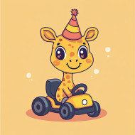 giraffe baby party hat go-kart mini speeding excitement cute animal rider flat icon celebration fun playful wheels motion transportation joyful happiness outdoor trendy stylish movement sports friendly racing cheerful character whimsical energetic adventure charming sportyImagine Buddy