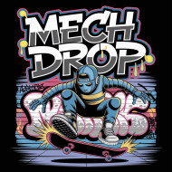 robot graffiti tshirt design illustration skateboarding action sneakers cap sparks neon 3d graffitiart streetwear comic book character motion bold colorful expression dynamic urban wall tags posters metallic chrome glowing highcontrast neonblue hotpink silver black boldlettering neontext futuristic streetstyleImagine Buddy