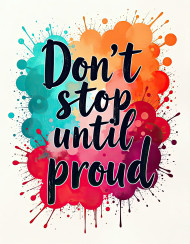 stop proud quote typography ink splash motivational vibrant brush strokes vermillion turquoise peach plum bold handlettered inspiration modern artistic contrast canvas paper inkbleed expressive highcontrast font blockscript freestyle energy motion clarity vibrance depth flux promptImagine Buddy