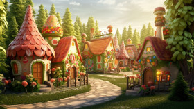 Charming gingerbread village in the woods, christmas stock image ai, christmas stock photos ai