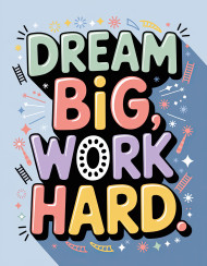 dream big work hard motivation success inspirational typography pastel mint peach lavender lemon ladders gears wands cartoonish vibrant playful handdrawn blue solid joyful uplifting poster vector print flat stylish quote art minimalism positivity midjourney ai prompt ideogramImagine Buddy