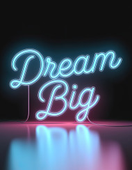 dream big neon glow blue scripted typography matte black cinematic realistic moody reflection vivid lighting vibrant smooth signage tube background poster vector soft illumination stylish artistic hd ultra design ideogram promptImagine Buddy
