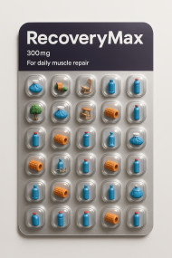 recovery max blister pack mockup hyperrealistic pill medicine clean minimal ice roller bottle modern muscle healing symbolic fitness relax strength therapy wellness object chill tension restore body cool repair chatgpt image prompt pain recharge foam sootheImagine Buddy