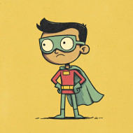superhero cartoon playful mask cape midjourney prompt big eyes quirky expression illustration character modern clean bold outlines pastel yellow childrens book minimalist designImagine Buddy