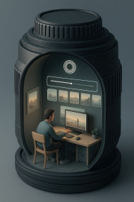 lens camera 3d diorama art prompt vsco edit photo minimal interior ui glow scene digital muted cool filter design tone user blue brown curved soft futuristic lighting adjust style vertical poster mobile texture chatgpt ambientImagine Buddy