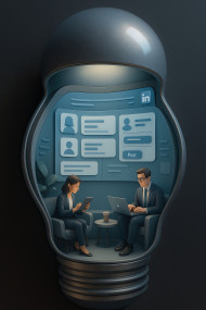 lightbulb linkedin 3d diorama art prompt avatar profile business lounge network ui glow steel white digital curved scene message lighting interior tech futuristic social update workspace career contact sleek poster vertical mobile ambient chatgpt clean minimalImagine Buddy