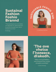 Eco-friendly fashion post using teal and coral colors, airy layout with natural textures and quotes, clean typography shows brand identity and sustainability