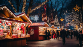 Couples hold hands at christmas market, christmas stock image ai, christmas stock photos ai