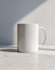 Coffee mug mockup on minimalist background, soft natural lighting, smooth shadows, clean white or neutral-toned studio setting, high-detail photorealism