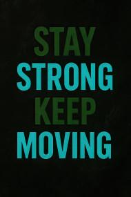 stay strong keep moving green white cyan endurance hopeful bold shadow font opacity scratches depth texture smoke contrast resilience verticalImagine Buddy