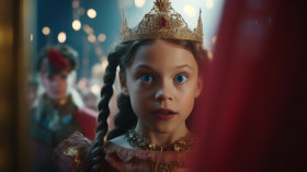 A close up of claras face as she watches, christmas stock image ai, christmas stock photos ai