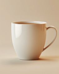 Ultra-realistic 3d render of a simple coffee cup on cream white background, smooth and glossy with subtle lighting, minimal and modern product aesthetic
