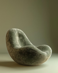 chair sculptural olive green smooth soft glossy gradient clean elegant lighting shading polished object surface modern minimalistic render design textures shadows furniture composition style minimalist realistic 3d studio background muted refinedImagine Buddy