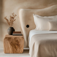 pine nightstand warm smooth wood crafted minimalist retro form clean natural subtle lighting elegant texture tone organic shape design detailImagine Buddy
