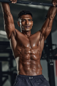 fitness man indian workout pullup muscular strength gym sweat focus athletic shadow motion hard lighting power intense definition ripped gear flex exercise zoom sharpness breathing stamina action physique lowangle equipment chatgpt prompt fitnessphoto challenge upperbody maleImagine Buddy