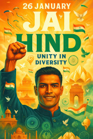 leader patriot republic paragliders smoke tricolor saffron white green flags flutter sky cloud gate rashtrapati temple doves conch spinning chakra chrome navy sunset eggshell leaf gesture unity diversity typography glow mist festive vibrant emotion chatgpt prompt artworkImagine Buddy