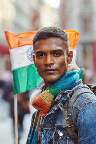 man indian casual street flag tricolor scarf denim urban candid expression pride lively crowd portrait backpack chakra jacket standing market people daylight outdoors identity vibrant color patriotic hustle background modern human national motion culture profile emotionImagine Buddy