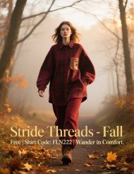 female model plaid flannel shirt strolling autumn woods dry leaves warm sunlight glowing trees cozy seasonal look clothing brands prompts fashion casual style outdoor nature rustic forest outfit apparel lifestyle vintage texture fall golden fabric walkImagine Buddy