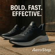 Sleek running sneakers on modern ground with sharp lighting and deep textures showing active lifestyle energy