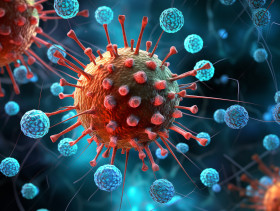 Photo 3d medical background with flu virus cell and lens flare, health and medical stock image