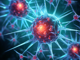 Photo 3d medical background with flu virus cell and lens flare, health and medical stock image