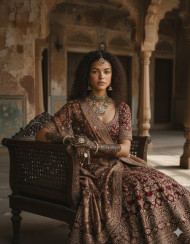 bride mehndi antique jewelry tradition vintage heritage culture elegance serenity nostalgia haveli wooden furniture classic wedding rustic charm muted tones cinematic feel timeless portrait regal bride wedding culture historical backdrop emotional beauty soft light bridal fashion vintage elegance cultural artImagine Buddy