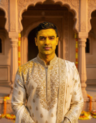 groom haldi ivory kurta royal traditional celebration elegance sunlight marigold courtyard regal tone rajasthani style carved arches cultural detail warm glow editorial lighting cinematic emotion indian wedding authentic expression festive ambianceImagine Buddy