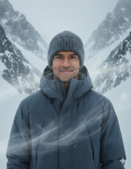 man winter fashion parka beanie portrait snowy mountains calm expression soft lighting winter men trending photoshoot prompts winter fashion trending prompts winter mens editorial prompts icy mist resilience cool neutrals alpine pass minimalist scene cold environmentImagine Buddy